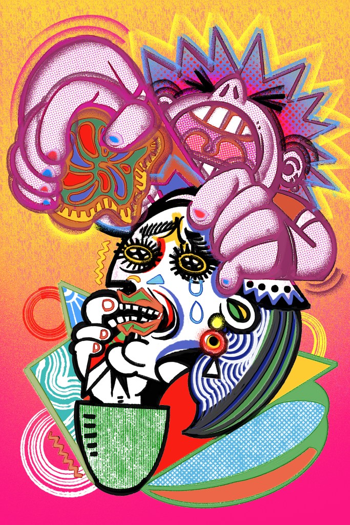 Editorial illustration about the article, Is smearing food on the ‘Mona Lisa’ a productive form of climate change protest