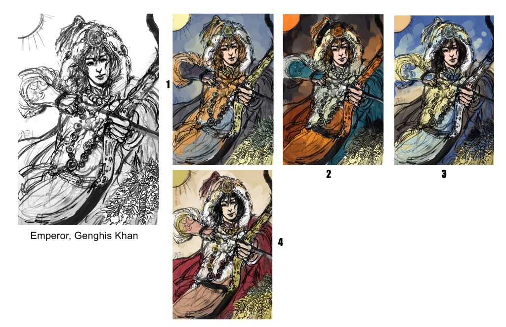 The emperor & hermit final 1final 2Final taro card design Historical figure: Genghis Khan Historical figure: Shunshui Zhu color test Related